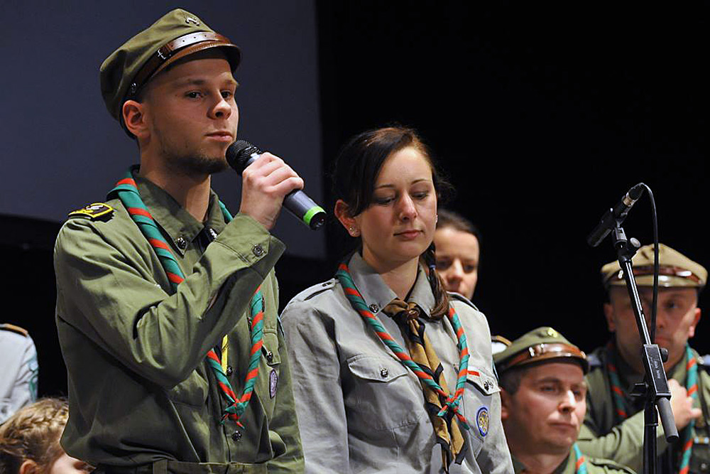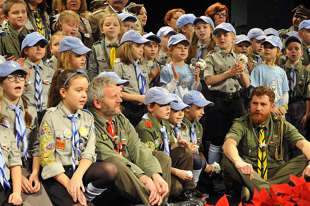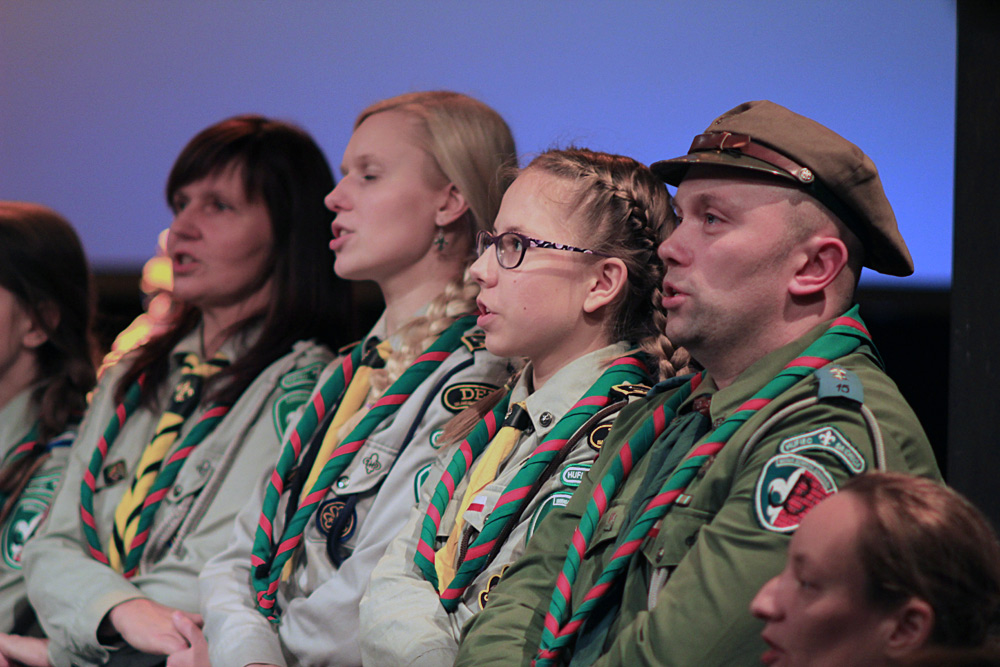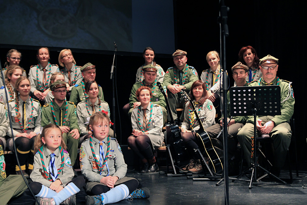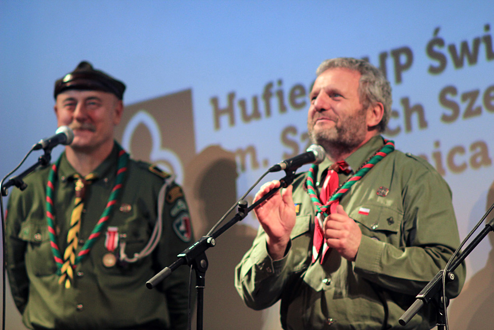 Potem mogliśmy już zacząć kominek. Wspomnieliśmy w nim bohaterów wszystkich świdnickich drużyn. Druhna Basia sporą część kominka przeznaczyła dla naszego bohatera drużyny - Andrzeja Małkowskiego, a samą rolę druha Andrzeja odegrał Konrad Kluza.