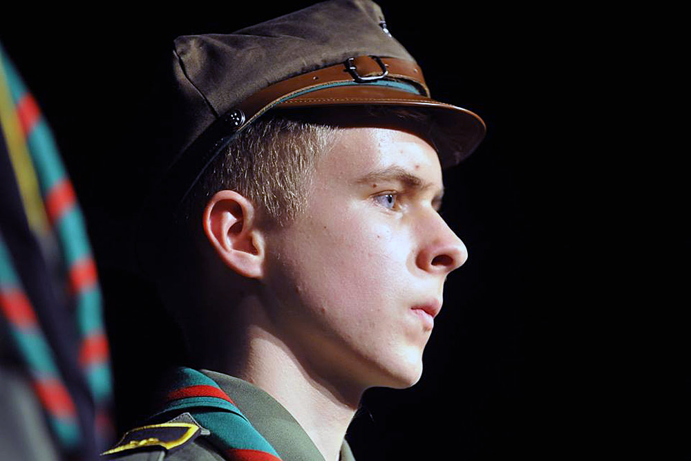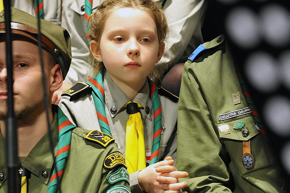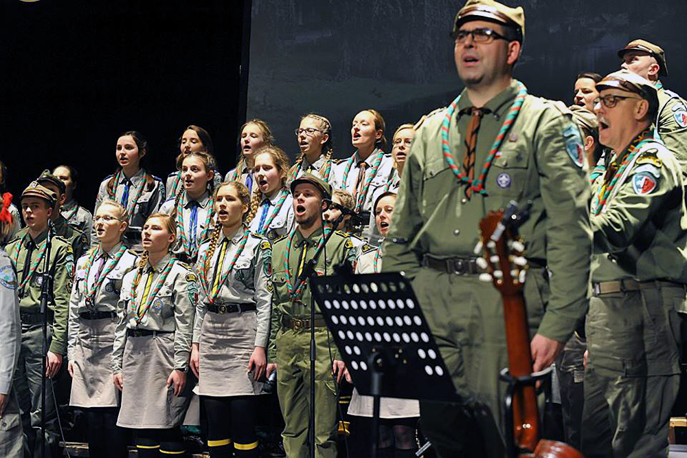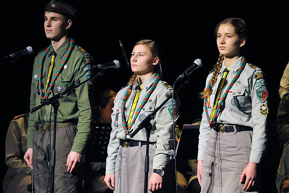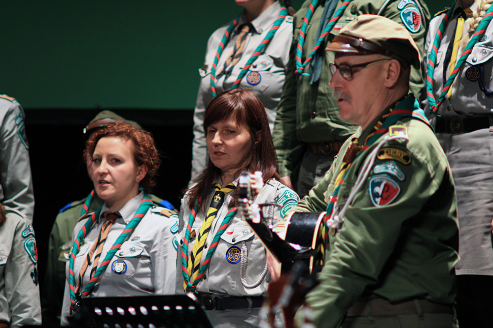 Potem mogliśmy już zacząć kominek. Wspomnieliśmy w nim bohaterów wszystkich świdnickich drużyn. Druhna Basia sporą część kominka przeznaczyła dla naszego bohatera drużyny - Andrzeja Małkowskiego, a samą rolę druha Andrzeja odegrał Konrad Kluza.
