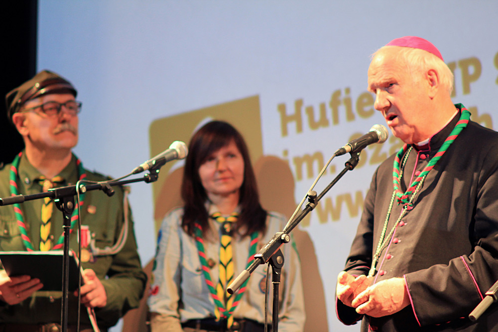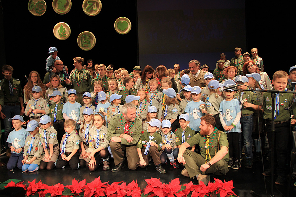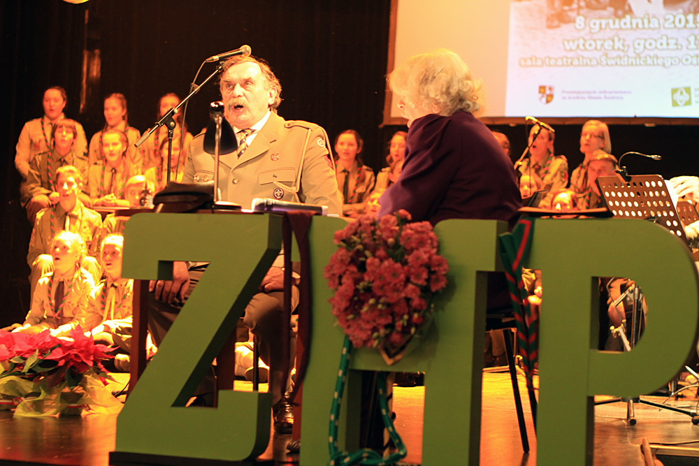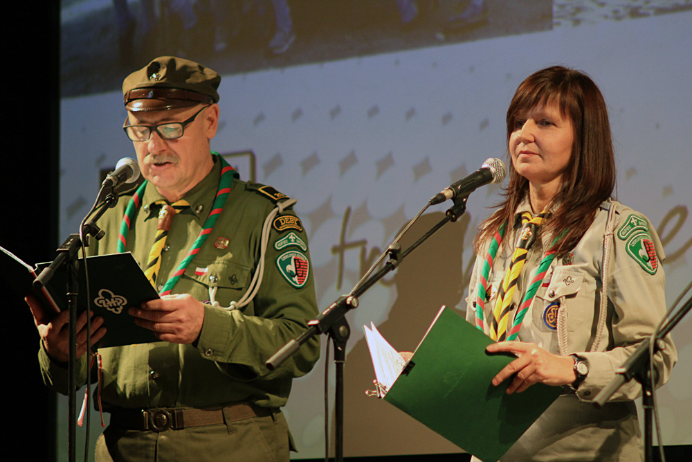 Uroczystość 70-lecia rozpoczęli nasz druh drużynowy z druhną Misią - komendantką hufca. Powitali wszystkich gości, zaprosili do obejrzenia wspaniałego filmu, przygotowanego przez druha Sławka, odebrali prezenty i gratulacje. Na druha Piotra czekała niespodzianka - został uhonorowany Medalem Komisji Edukacji Narodowej.